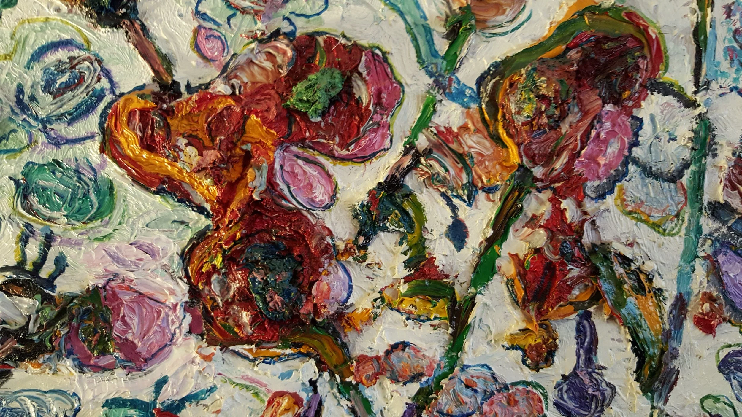 I frequently make changes in composition as I proceed to apply more layers of paint in various parts of the picture until I sense an overall balance in the painting. Proceeding, I experiment with a full range of paint application from transparent glazes to thick opaque textures. I’m putting things in and taking them out in this process until I feel the painting is telling me it’s complete.